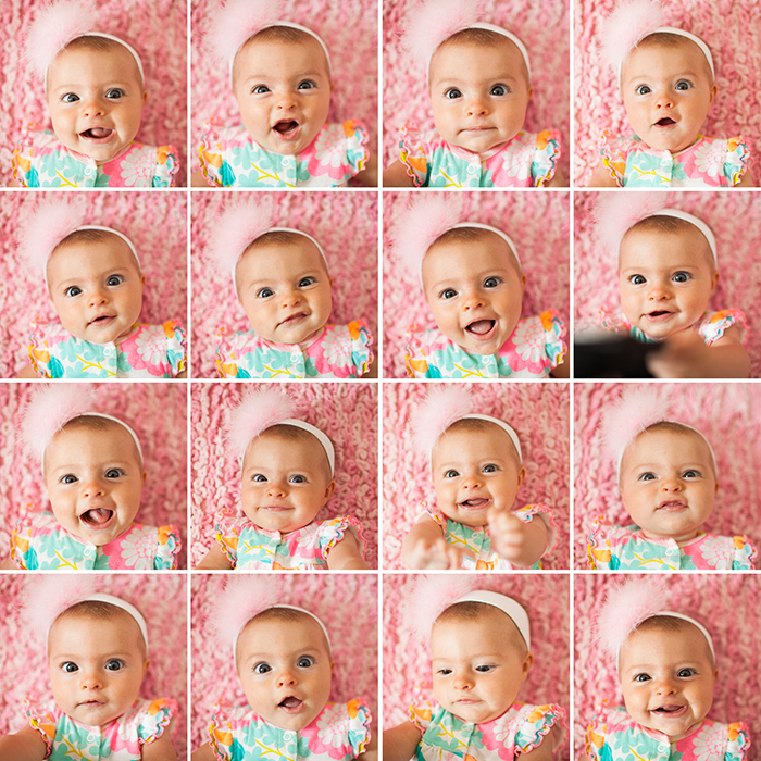 Claire has been full of funny faces lately. I took these yesterday while taking her weekly update photo. There were so many that I couldn’t live without! Thus, I created a giant montage of Claire’s many expressions.